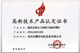 高新技术产品认定证书